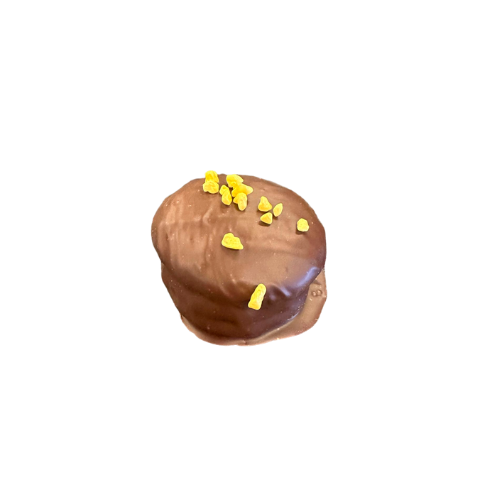 lækkert blød honnigdej fyld med vegetabilist creme og aprikos overdækket med ægte belgisk chokolade